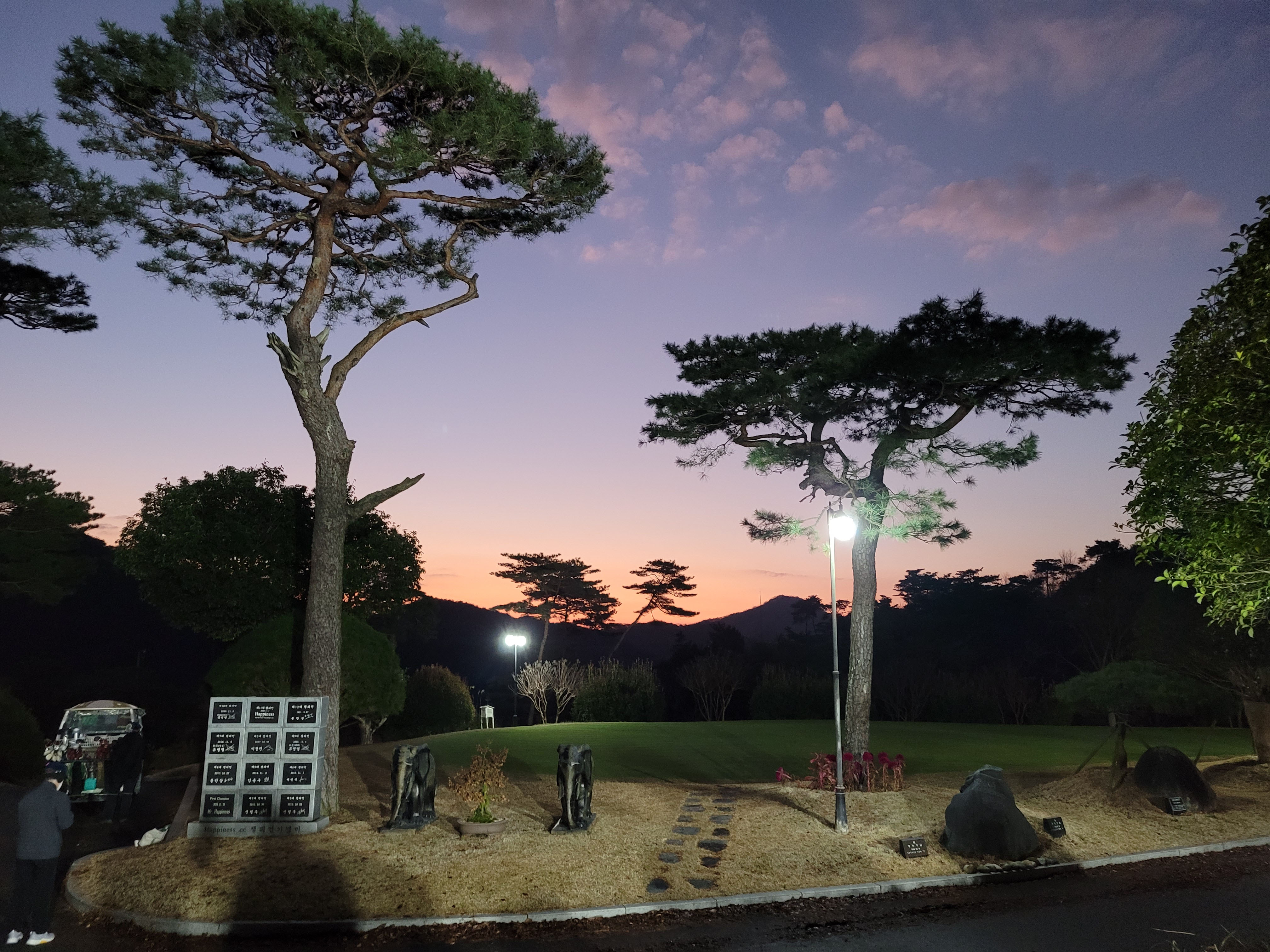 티업전 복장을 보니 모두 겨울복장이라 한컷씩 하기로 하고, 마지막 출발전 단체사진을 찍고 티업을 할때 갑짜기 동쪽 하늘에서 시뻘건 해가 벙긋 솟아 올라 오는 풍경이 있어 팔월광땡이 떳더랍니다. 이곳은 모두 36홀인데 어느 한곳만 페어웨이가 좁았고 나머지는 모두 멋진 페어웨이를 뽐냈습니다.