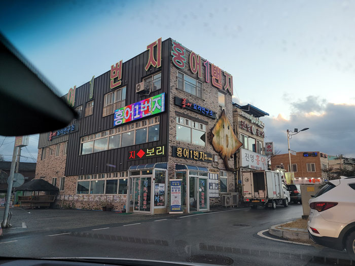 돌아 오면서 이곳까지 왔은께 영산포강변에서 홍어를 안 먹을순 업제이 , , ,하면서 <홍어 1번지>로 직행하여 그곳 남도의 음식을 만끽 하였습니다.